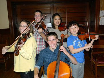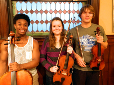 Soloists l to r: Juliette Tardiff, cello, Carla Stein, violin, Jeffrey Rubino, violin